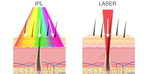 Sowohl die Laser-Haarentfernung als auch IPL zerstören deine Haarfollikel, funktionieren aber unterschiedlich. IPL-Geräte zur Haarentfernung verwenden einen Breitband-Lichtstrahl, um die Haare zu zerstören, während die Laser-Haarentfernung einen präzisen Lichtstrahl verwendet, der die Haut durchdringt und die Haarfollikel erreicht.
