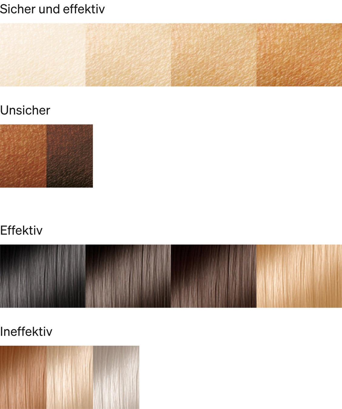 Nicht alle IPL-Geräte eignen sich für jeden Hautton und jede Haarfarbe. Vergleiche deinen Haut- und Haartyp vor dem Kauf mit dem Diagramm für die Kompatibilität des Geräts. (Die meisten Hersteller stellen eine solche Tabelle auf ihrer Webseite zur Verfügung; du kannst dich auch an den Kundendienst wenden).