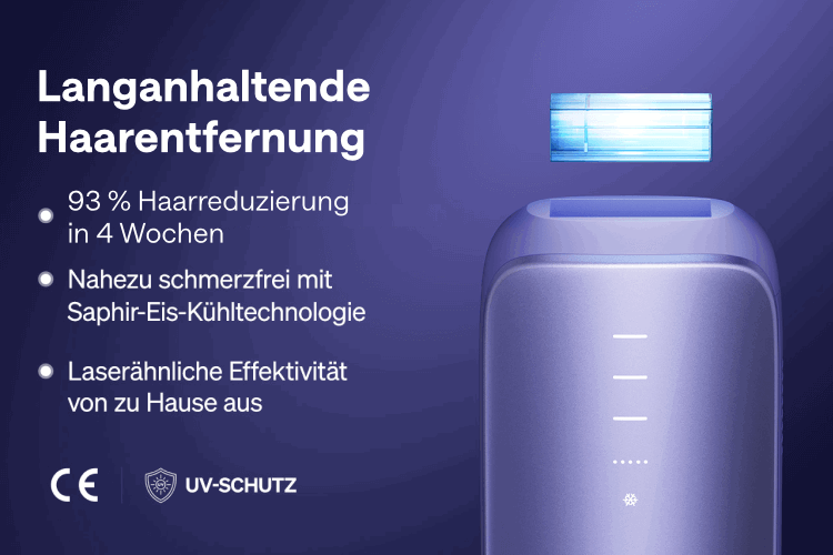Es ermöglicht eine schnelle und schmerzlose Entfernung von Haaren mit der patentierten Eiskühlungstechnologie. Das Gerät ist kompakt, FDA-zugelassen und hat eine unbegrenzte Anzahl von Blitzen, um dir mehr als 10 Jahre lang gute Dienste zu leisten.
