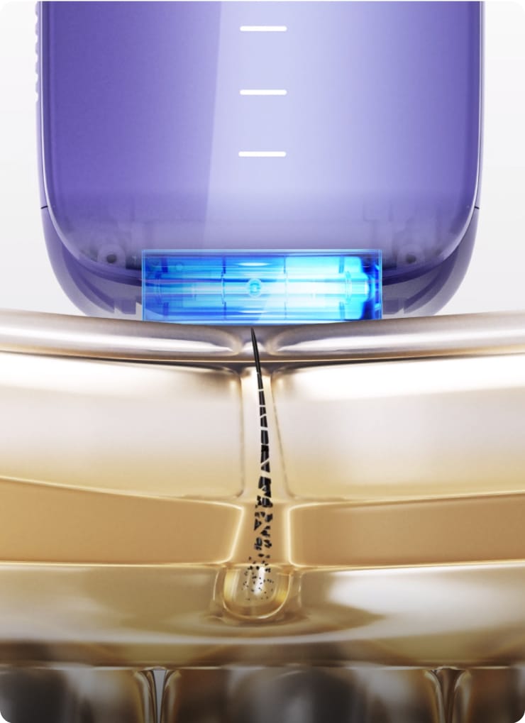 Bei der IPL-Behandlung (intense pulsed light) werden starke Lichtimpulse mit breitem Spektrum verwendet, um das Haar an der Wurzel zu behandeln. Das Licht wird vom Melanin im Haarfollikel absorbiert und dann in Wärme umgewandelt, was zu einem dünneren Haarwuchs und schließlich zu einem völligen Stopp des Haarwachstums führt. Die IPL-Geräte von Ulike sind von der FDA/CE zugelassen und bieten eine kosteneffiziente, bequeme Lösung im Vergleich zu Kliniklasern und herkömmlichen Methoden der Haarentfernung.