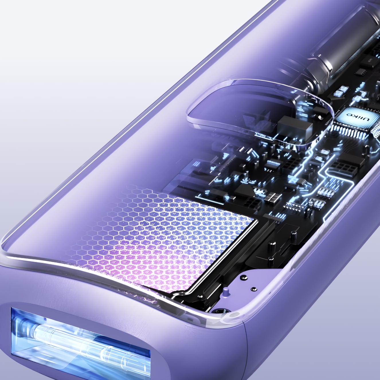 Die IPL-Haarentfernung gilt im Allgemeinen als viel weniger schmerzhaft und fast so effektiv wie die Laser-Haarentfernung. Außerdem ist Ulike das einzige Unternehmen, das die Saphir-Eis-Kühltechnologie einsetzt, um eine nahezu schmerzfreie Behandlung zu gewährleisten.